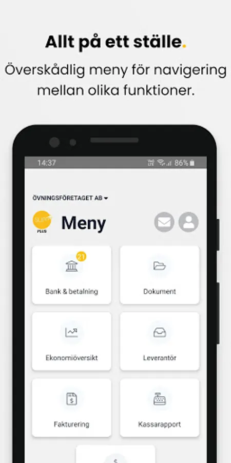 • Automated invoice flow where you via the app certify, approve and make your payments via our bank integrations.