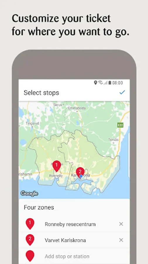 With Blekingetrafiken’s new app, you can buy tickets and search for journeys quickly and easily. The app works for journeys within Blekinge. The app includes our new tickets, and discounts for travelling within Blekinge.
