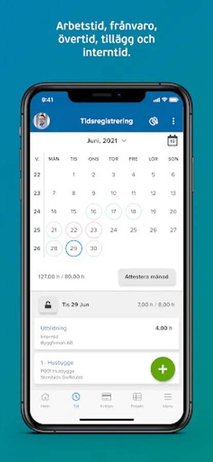 With a web-based time accounting system, you and your employees can report time wherever you want, both on your computer and directly on your mobile or tablet. In Visma Tid, it is also easy to report billable time, internal time, absence, overtime, salary supplements, travel and material consumption - all in a single solution.