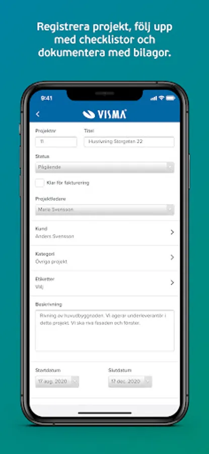 Create projects with checklists and workplace descriptions
