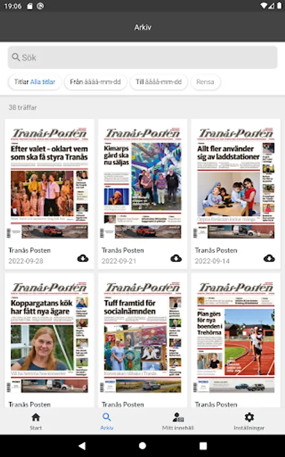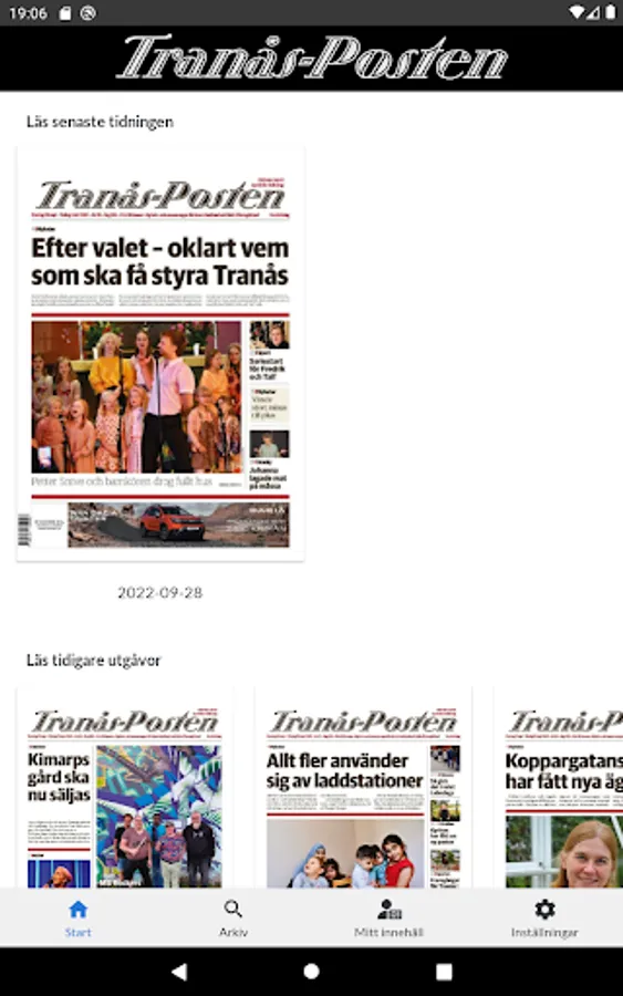 In the app, you can read today's newspaper in a digital, browsable version. The app works just as well in your smart phone as in your tablet. You only need to log in to the app once per device, after which you are constantly logged in. If you want to read the e-magazine offline, you must download it first. The magazine's articles can be opened in reading mode and articles can be read out with speech synthesis.