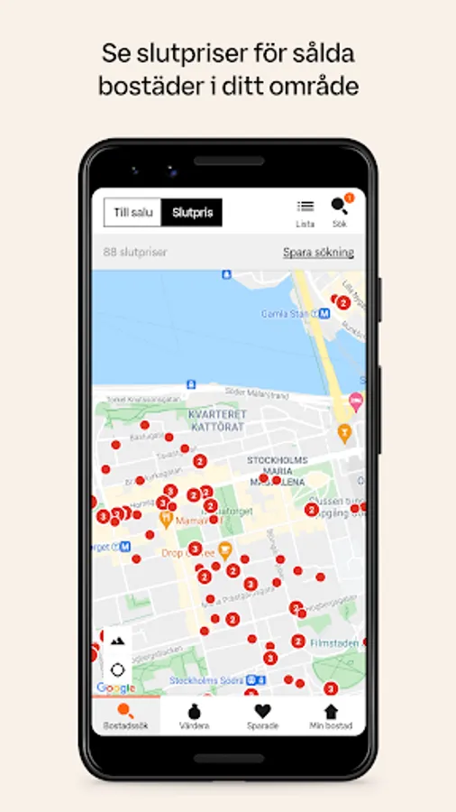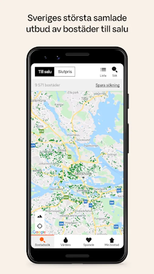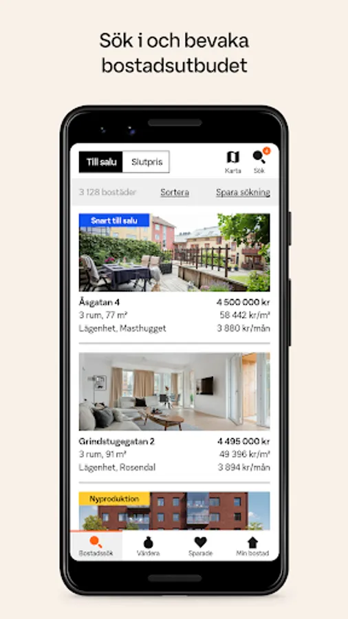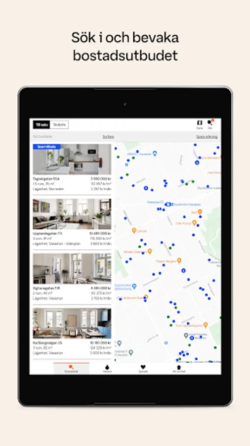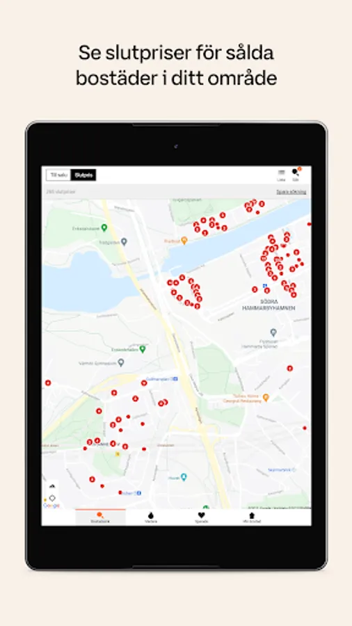 In Booli's app, you can easily see Sweden's largest combined range of homes for sale, soon to be sold and final prices.