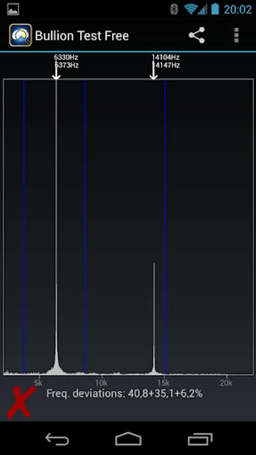 6c. Some Android devices have microphones which are unable to record high frequencies above ~10kHz. If the app detects two out of three expected frequencies, it will indicate this with the fraction "2/3", and report that device limitations might be the reason why the last frequency was not detected.