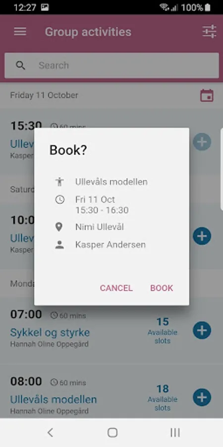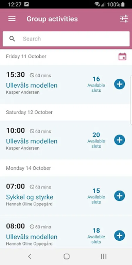 If the hour you want to book is full, you can put yourself on a waiting list. Info about vacated places is sent continuously by email, and no later than one hour before the start. You do not need to confirm that you are taking the class, but it is valid as an ordinary booking.