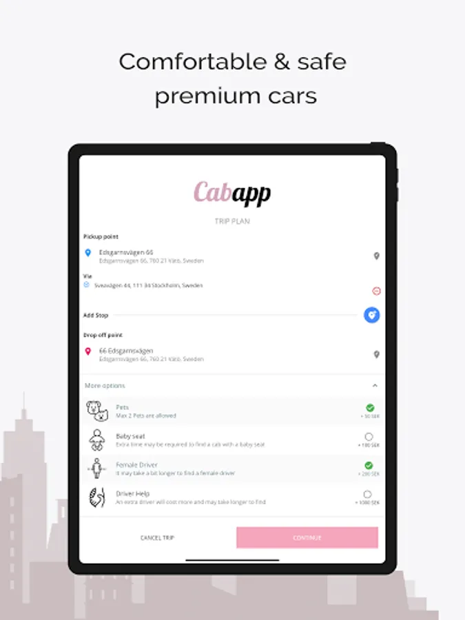 Welcome to Stockholms new premium taxi service. All of our cars are of the highest standard, and our drivers have gone through rigorous background screenings, so you can feel safe and comfortable when riding with us.