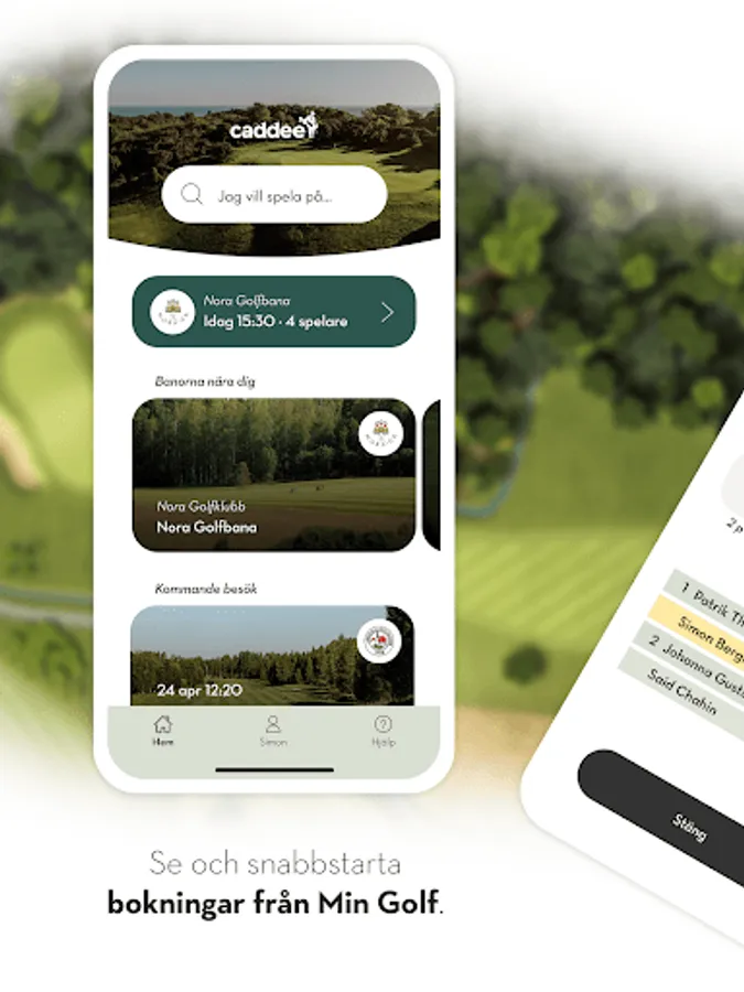 Caddee hämtar automatiskt dina tidbokningar från GIT och uppdaterar ditt och dina medspelares handicap i MinGolf efter ronden.