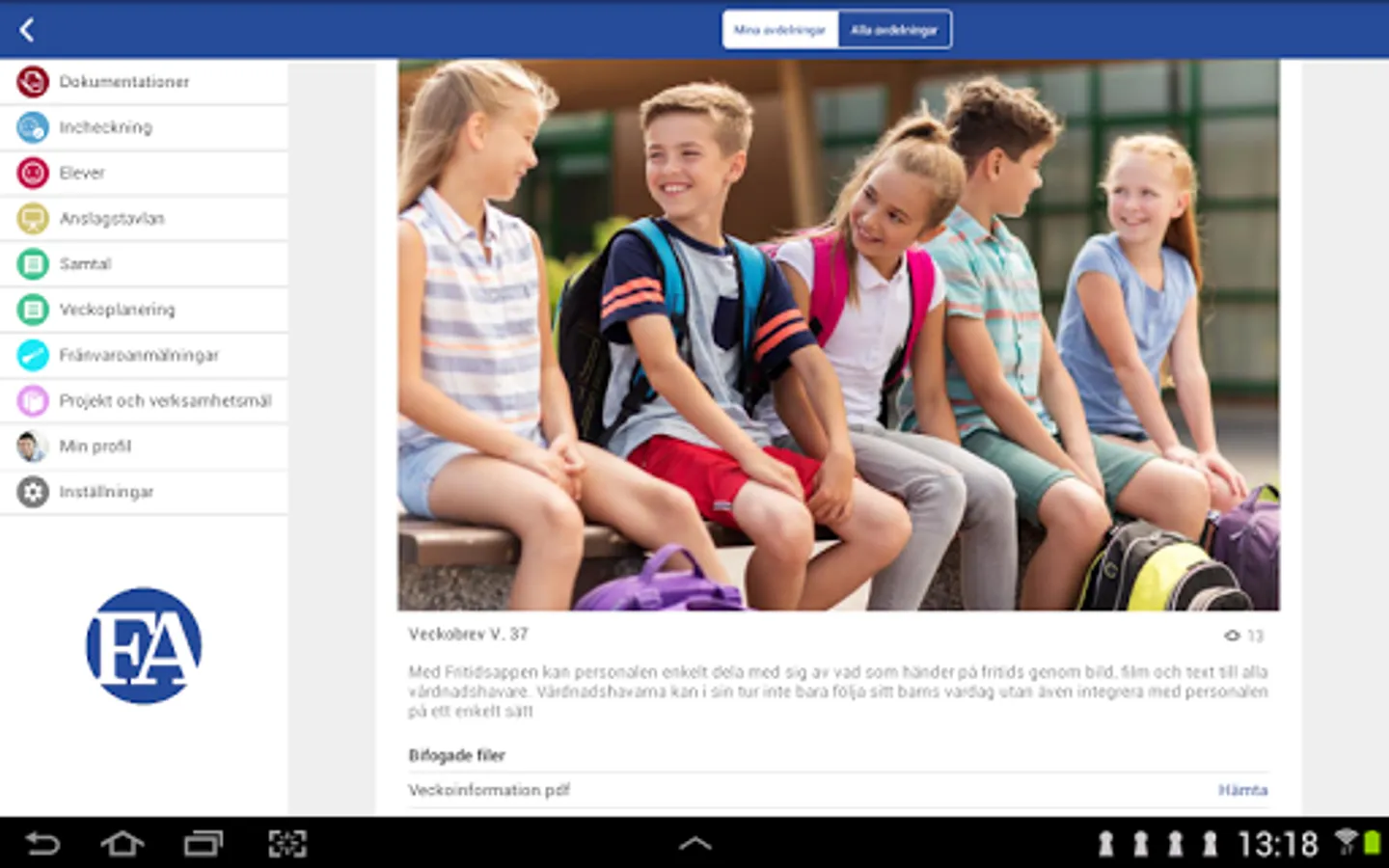 With Fritidsappen staff can easily share documents as images, videos and explanatory texts with the parents. Parents can not simply follow their child's daily life, but also interact with the staff in a simple way. Via computer, tablet or smartphone, they can see what happened on the trip!