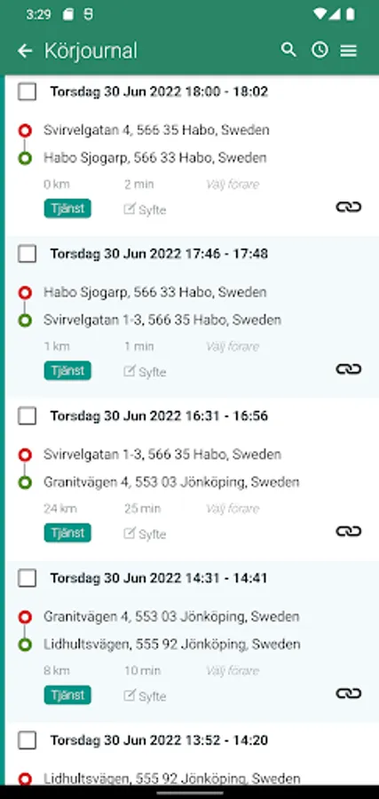 • Triplog: Automatic triplog approved by the Swedish Tax Agency