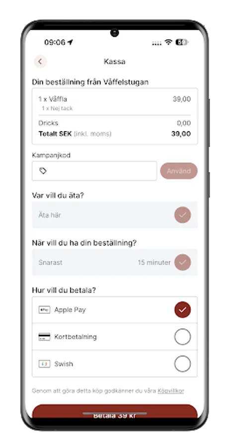 A rumbling stomach, a dry throat or just the urge for a cozy waffle break? With this app, you can easily order food and drinks at Stöten's restaurants - also in a safe way without having to be crowded in queues or around the bar.