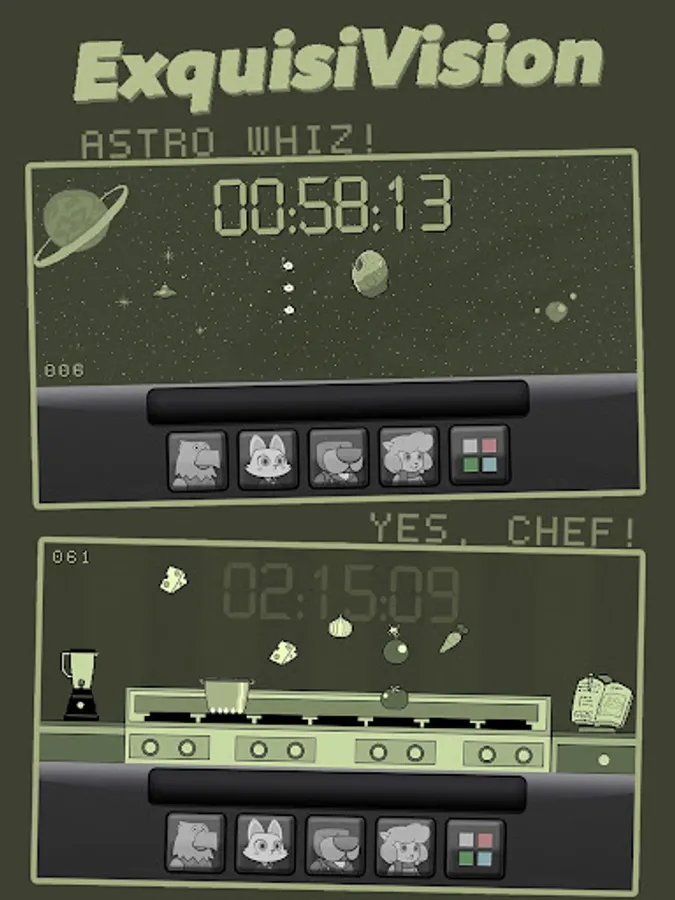 - Games-within-a-game ExquisiVision console with competitive arcade action.