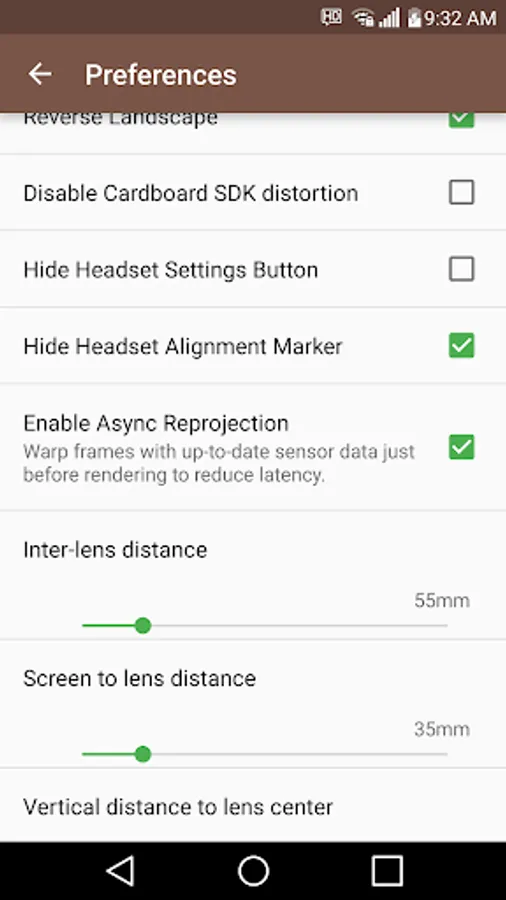 - Headset configuration from within the app. Supports several different head trackers, find the one that works best with your phone and eliminate drift.