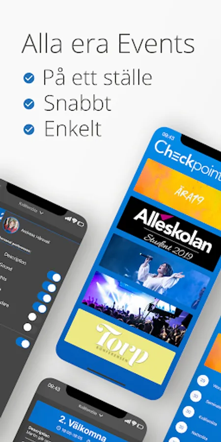Checkpoints hjälper alla i Event-världen till ett enklare liv genom att strukturera event och användare, realtidsuppdatera körscheman, Tracking & Notiser - Allt digitalt!