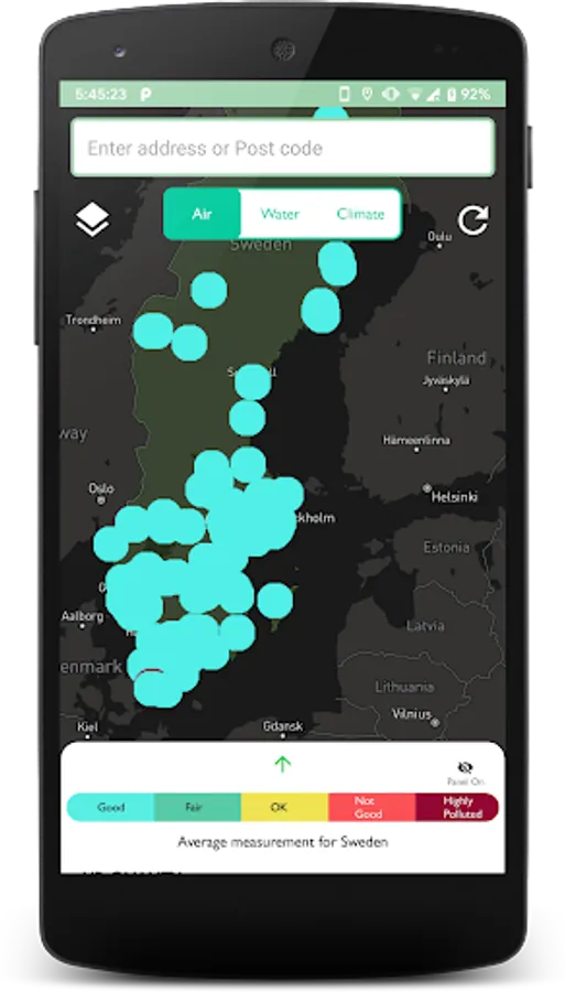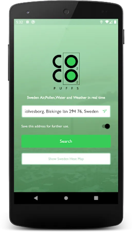 CO2CO2 Sweden is an app designed using advanced machine learning algorithm and big data collection to display, Air, Water, Pollen, Climate data in real time.