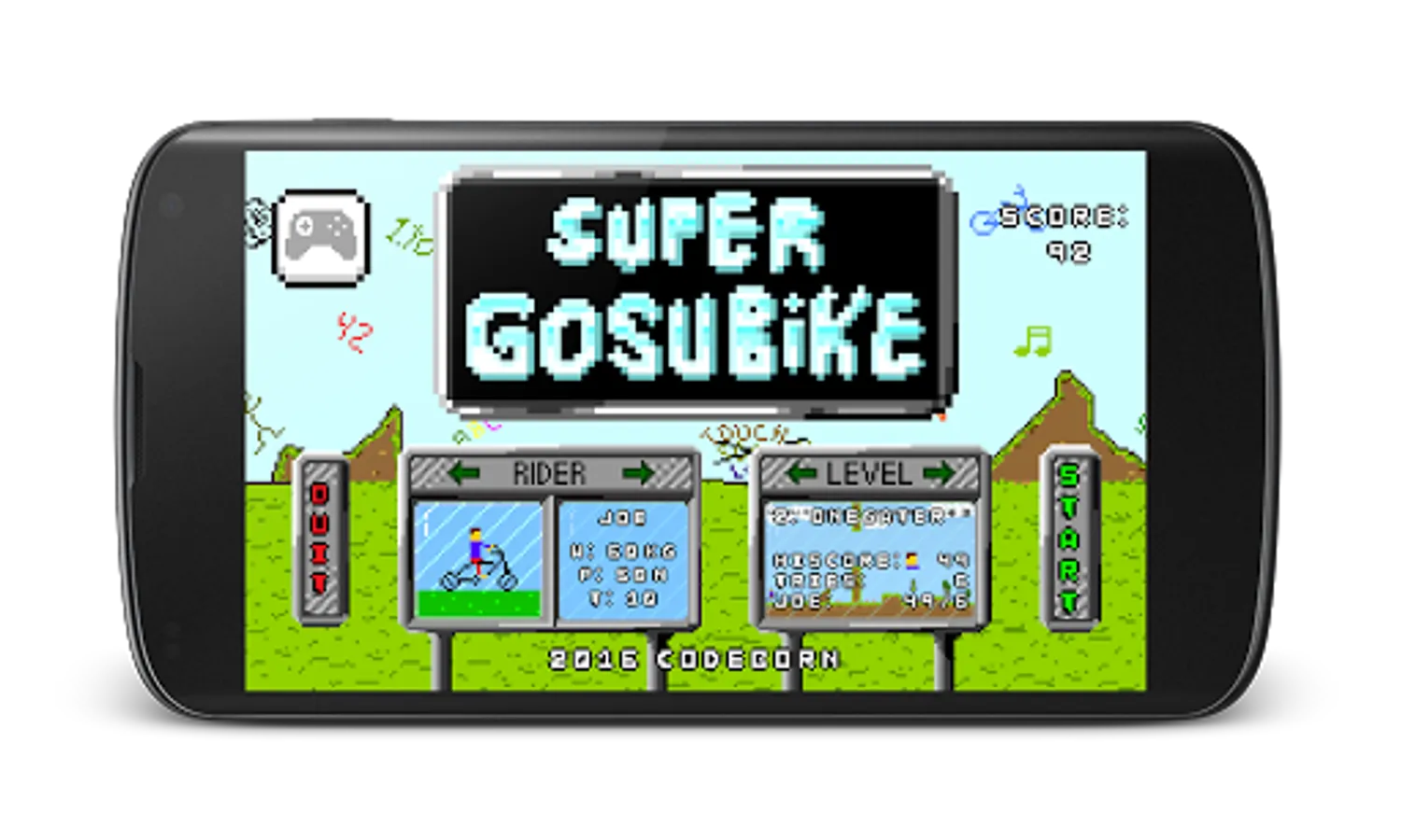 Super Gosu Bike is a retro styled launcher-type game where it is your task as one out of five daring stuntbikers to ride unscathed through 25 different levels in your quest for glory and highscores.