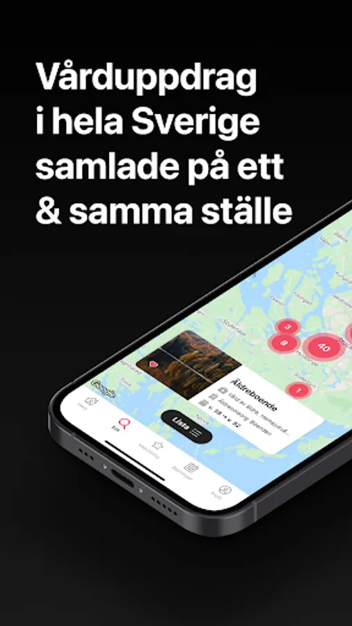 • Utifrån dina preferenser visar vi en lista med alla tillgängliga uppdrag.