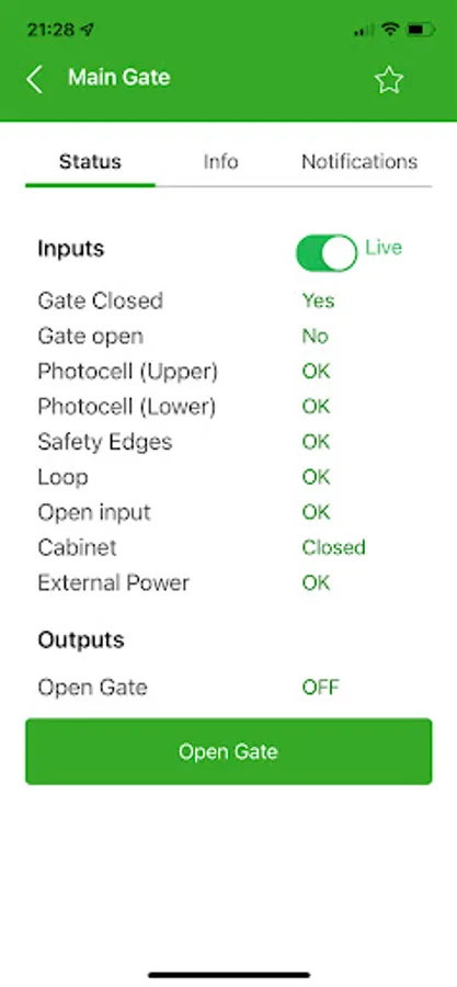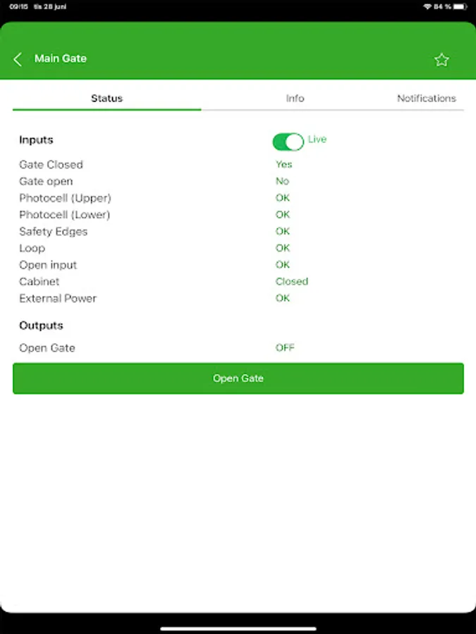 Open the device directly from the app, see the live status of the device and receive push notifications in the app in case of a fault on the system.