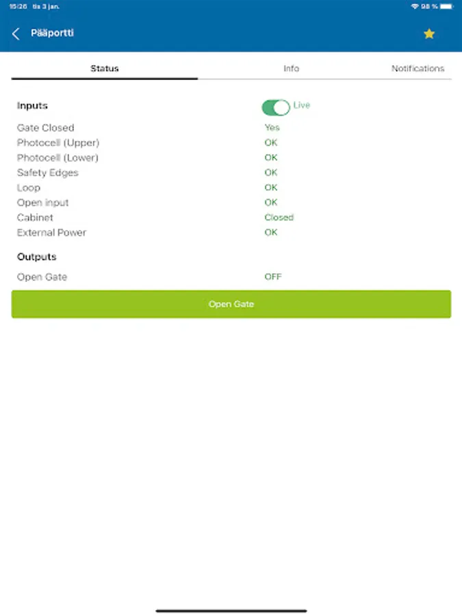 TeknoLink is functional monitoring and remote control of a gate, boom, door or other device. Check, monitor and control. Receive notifications in the app if TeknoLink detects a fault. Control e.g. the gate via the application/cloud.