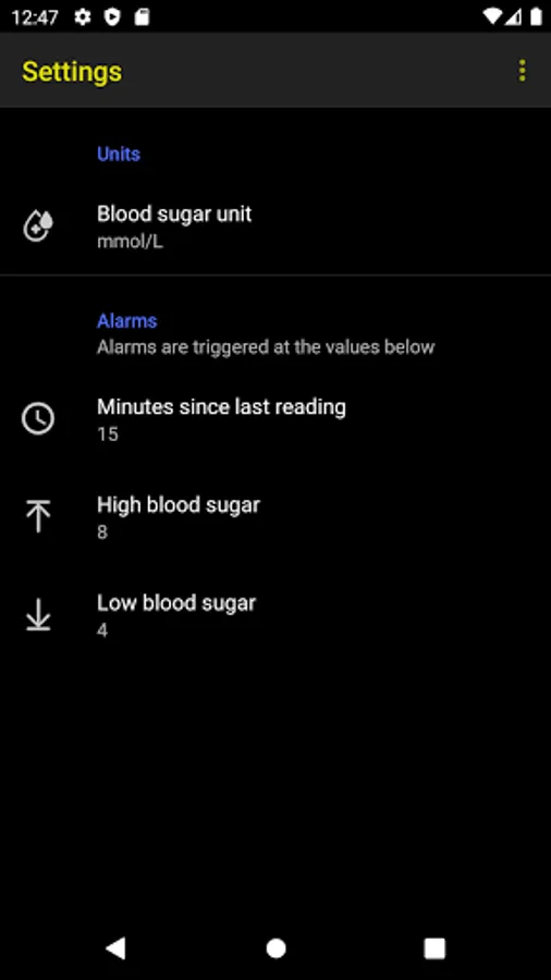 Monitor your Nightscout glucose levels on your Android phone or tablet. Dark UI, large readings and buttons, designed for usage at night.