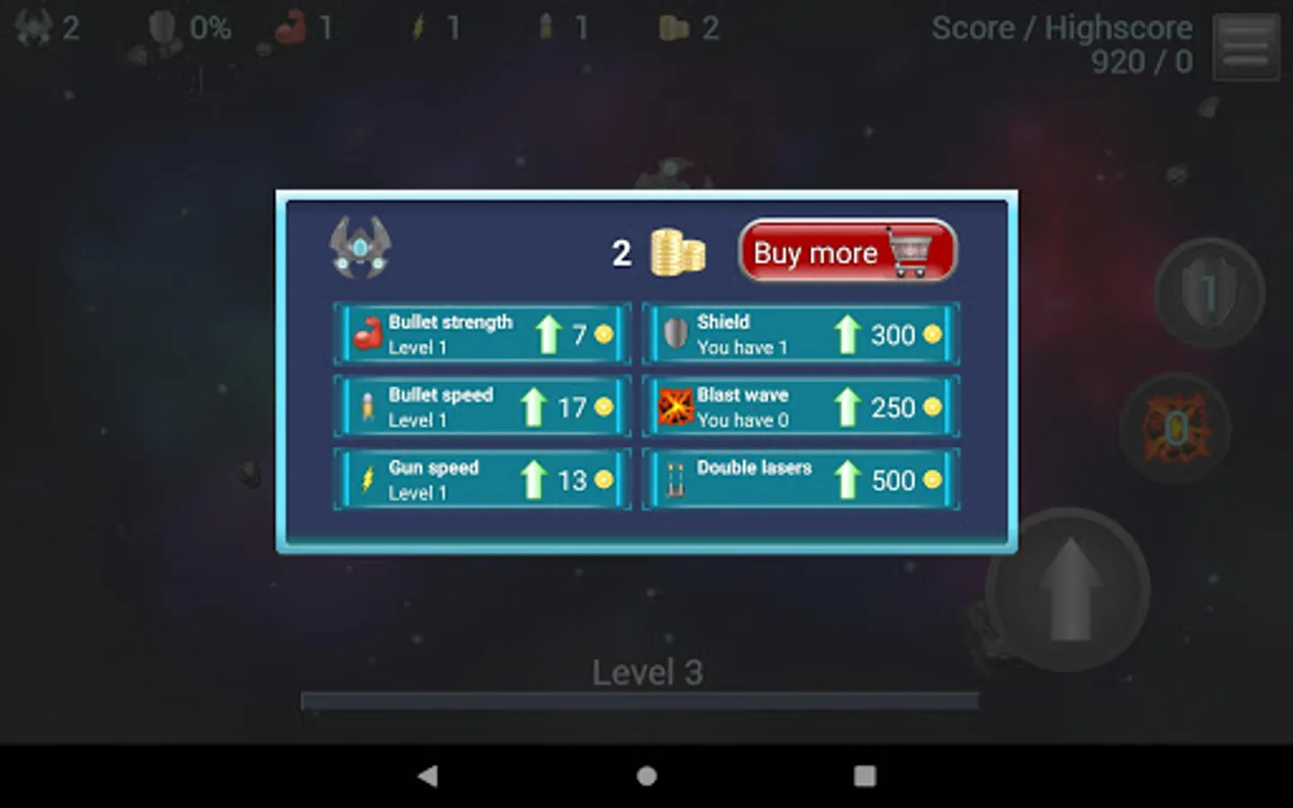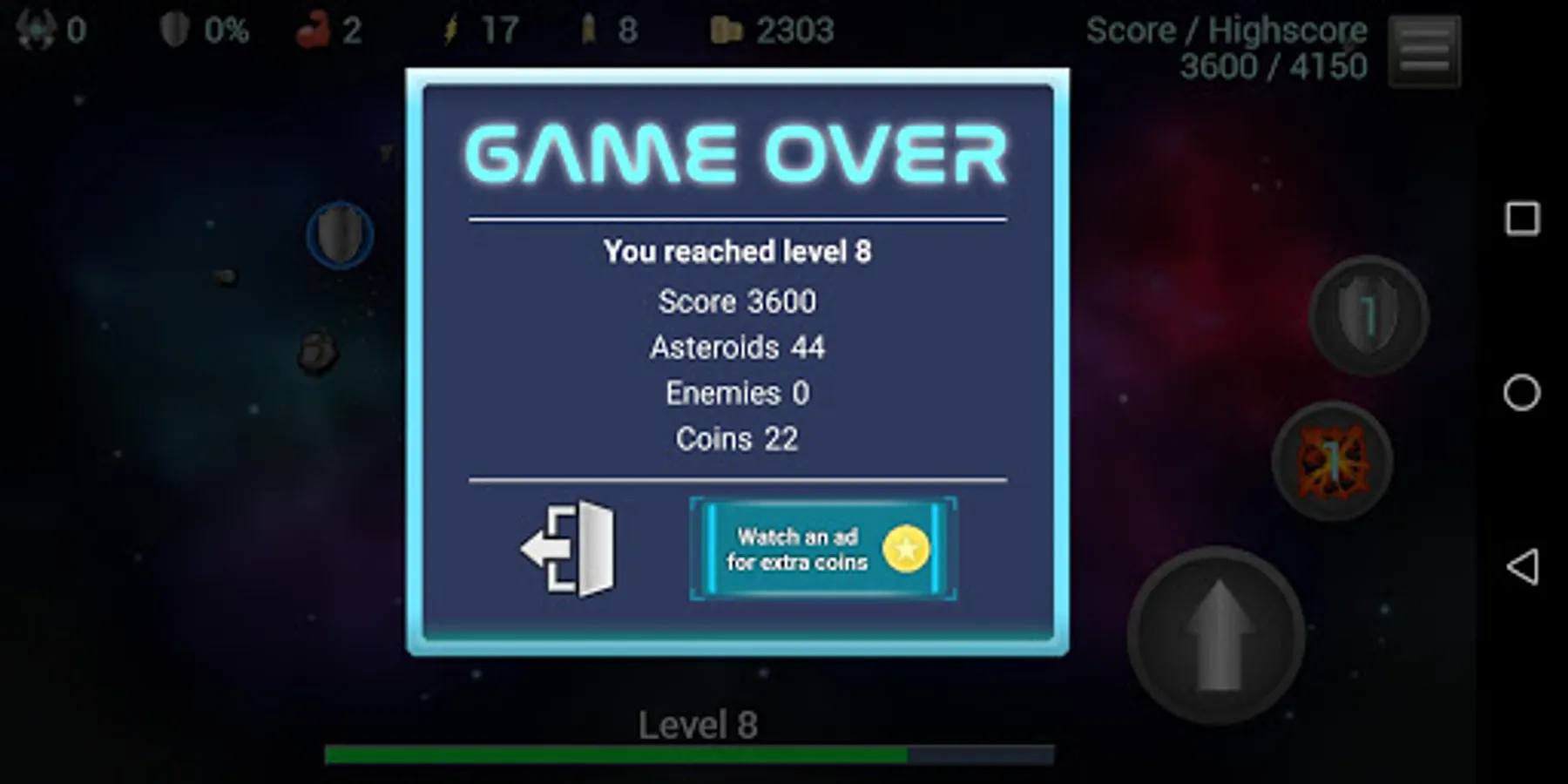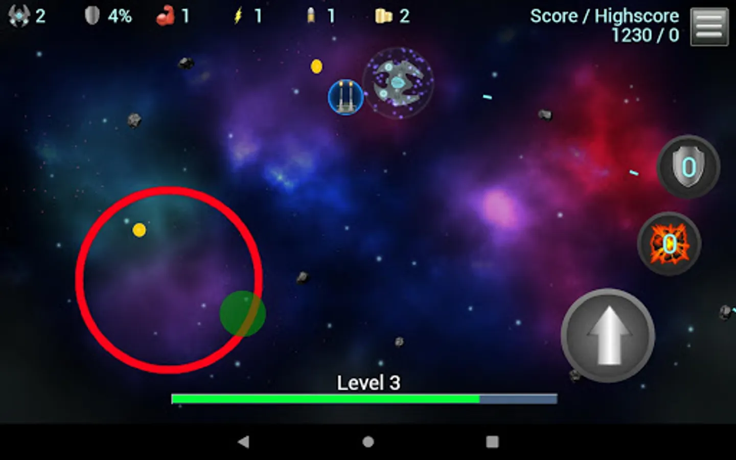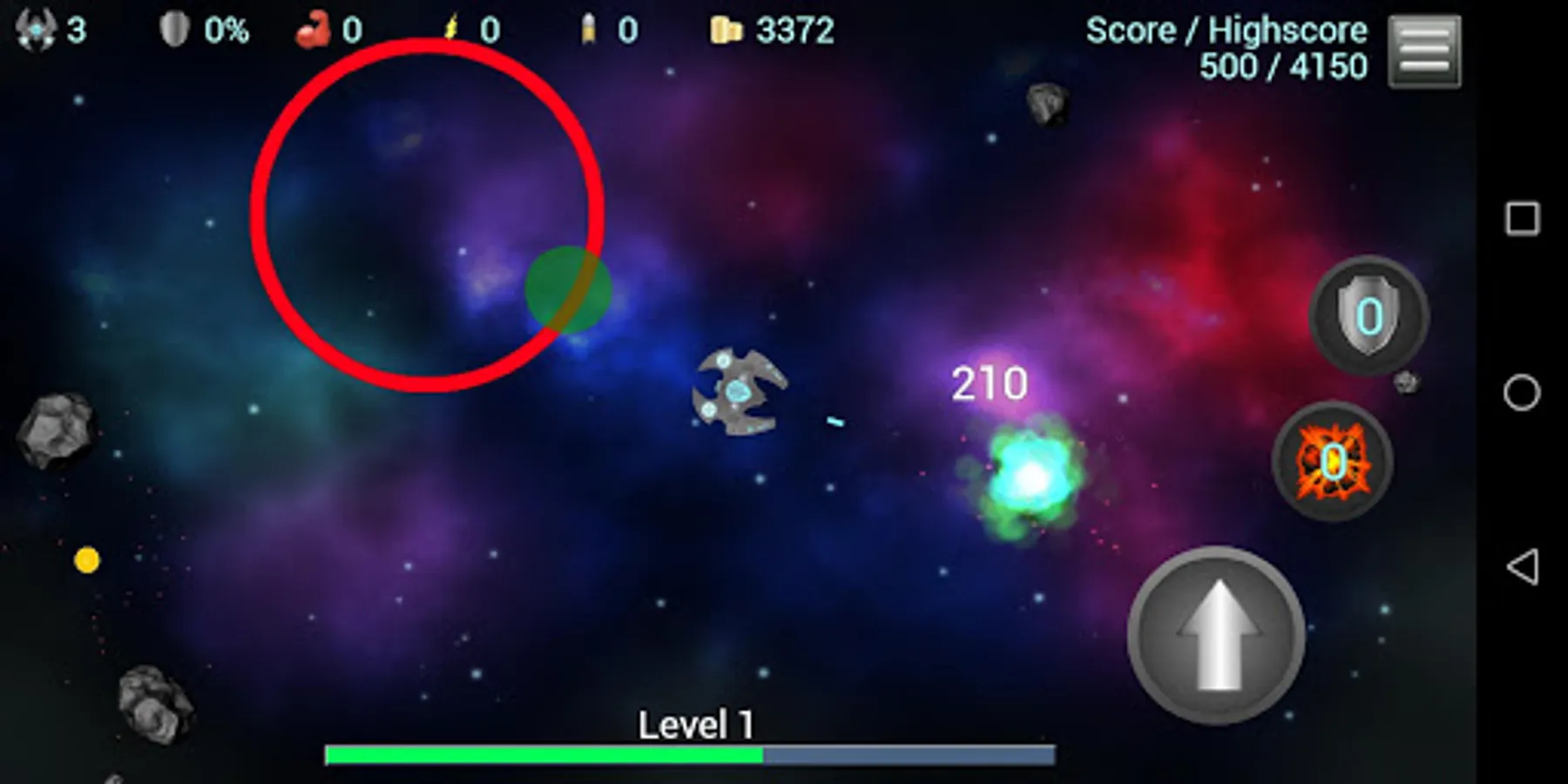 Classical arcade style asteroid destruction game. Move, aim and shoot. The asteroids become faster and tougher. Enemies appear. Blast your way through 300 consecutive levels of space dust. Your ships are limited. Empower with speed and power. Unlock blast waves. Shield yourself. Are you ready to navigate the asteroid fields?