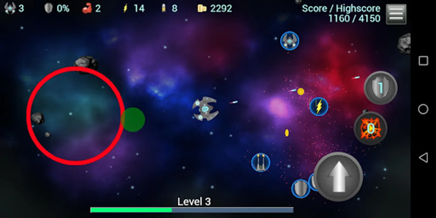 Asteroid shooter features: