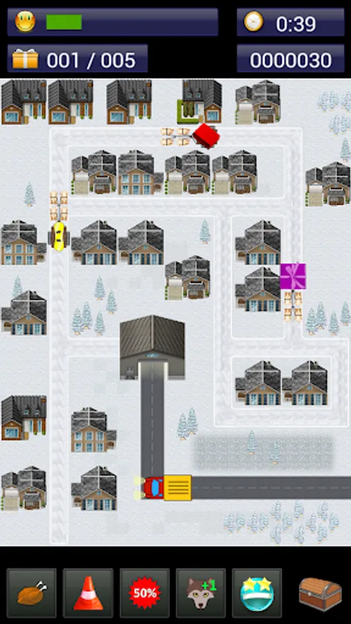 Have a go at this casual game taking place in a wintery landscape, with houses, gifts, dog sleds and trucks. Can you deliver all the gifts on time for Christmas?