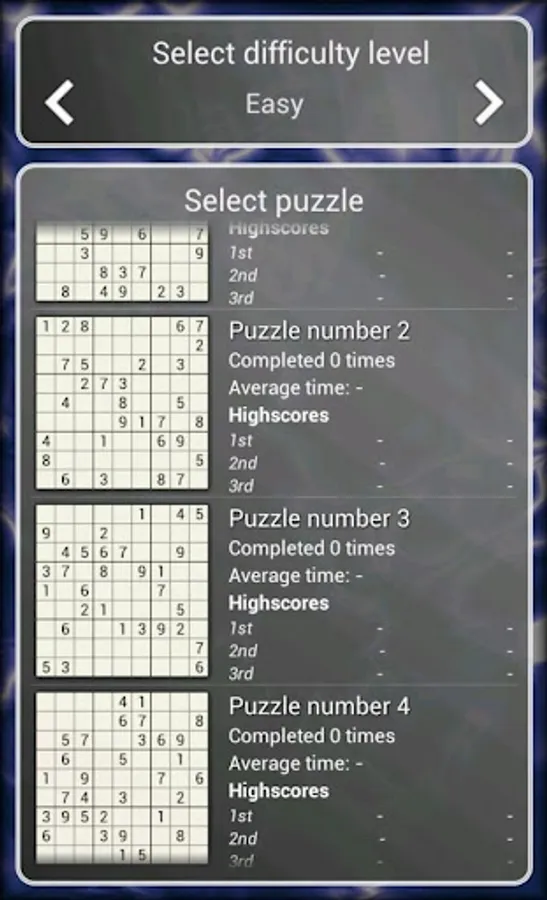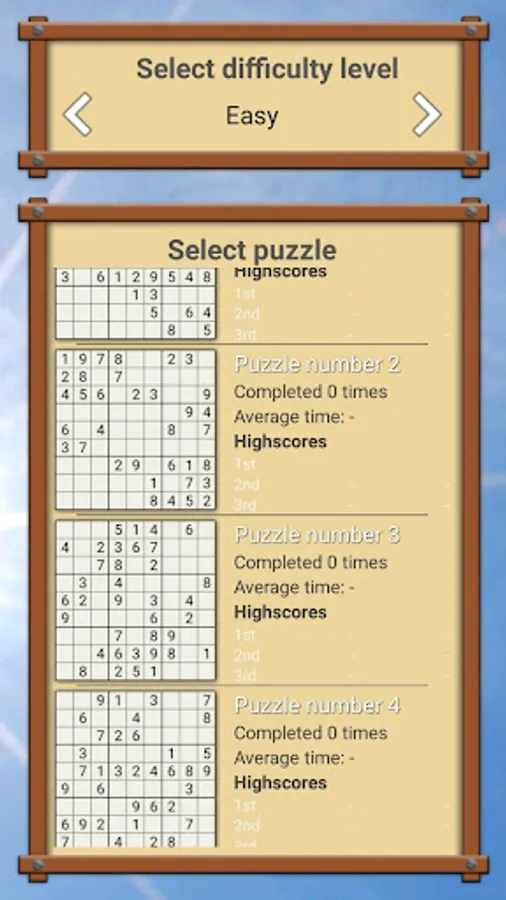 - Highscore that you can use to compete with yourself on each individual Sudoku puzzle.