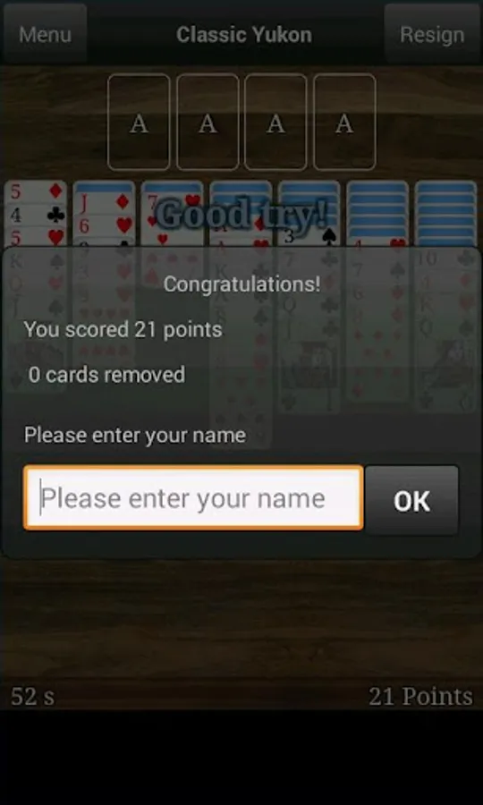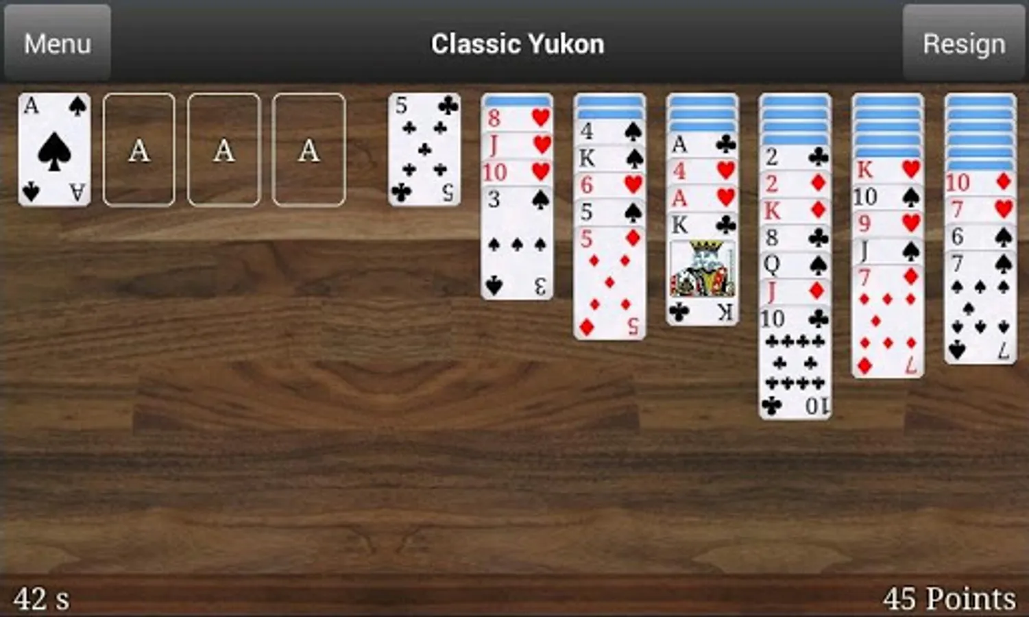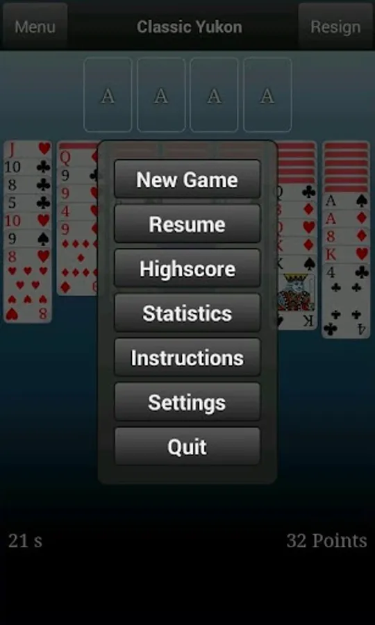 In Classic Yukon (a card solitaire similar to Klondike/Klondyke) you start with a stock of cards and a tableau consisting of seven piles. Unlike Klondike, all the cards are dealt at the start of the game in Classic Yukon. In the game you have access to several card tables and card backsides. You can use these to get a more personal experience. The game also features a highscore list and game statistics that you can use to compete with yourself and with others playing on your device. Try it out now for some fun.