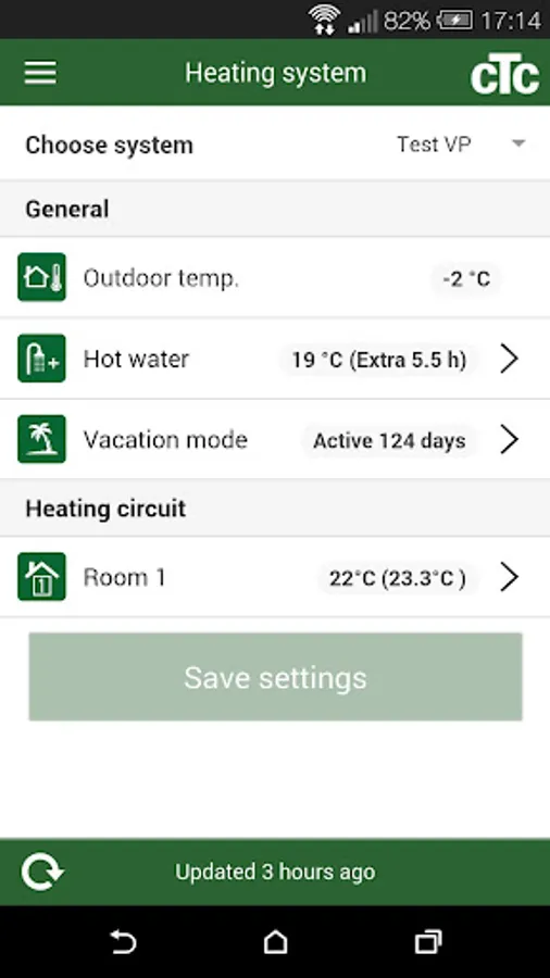 Note! This application requires the accessory CTC SMS or CTC Internet and at least firmware 20150701 or later installed in your heat pump system.