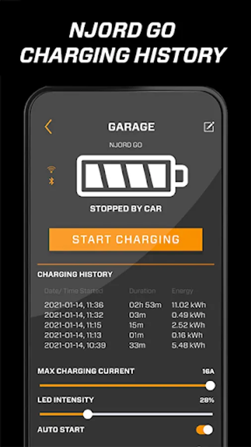 • Start, stop and pause charging remotely, and enable or disable auto start