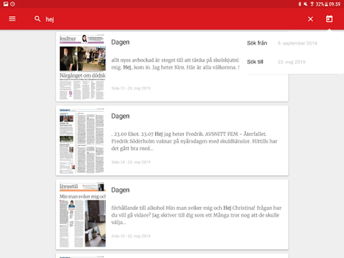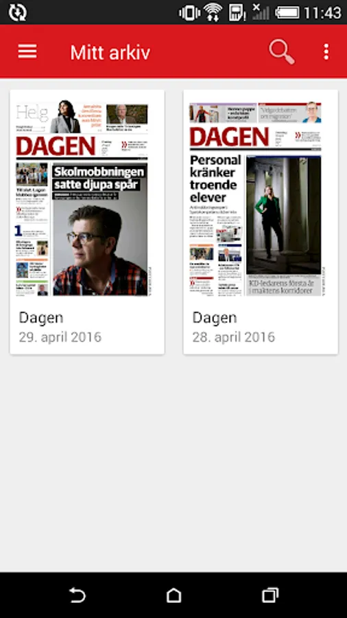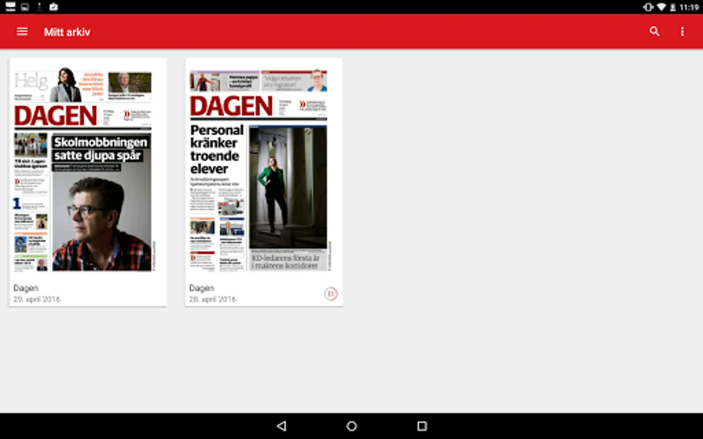 In eDagen you can share articles with friends, search archives and save the magazine if you want to read later or when you are not connected. You can receive push notifications so you are reminded when a new newspaper is available to read.