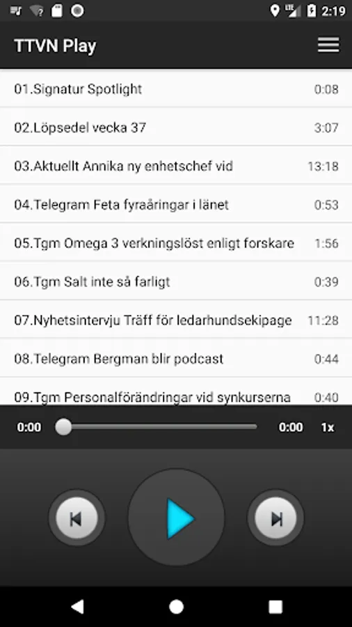 Listen to the Taltidningen Västernorrland in your phone. Install and launch the app, then press the play button and you are on the go. The app gives you the opportunity to listen, pause, jump forward and backwards in the week's number of Taltidningen Västernorrland and select the item from a list. The app is customized for the TalkBack feature on the phone.