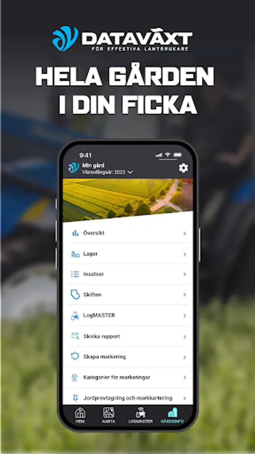 NOTE: To use the Dataväxt app, a subscription to New Dataväxt/CropPLAN is required. Email us at info@datavaxt.se or call 0514 - 650 200.