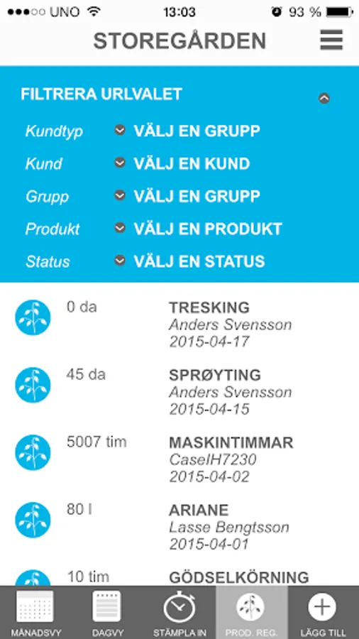 Produktregistrering - Skapa fakturaunderlag till kunder eller annan uppföljning för valfri kostnadsbärare. Få kontroll på förbrukningsvaror i företaget, tex dieselförbrukning, spannmålshantering osv.