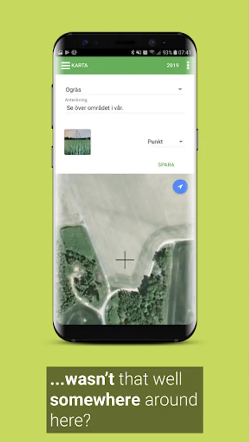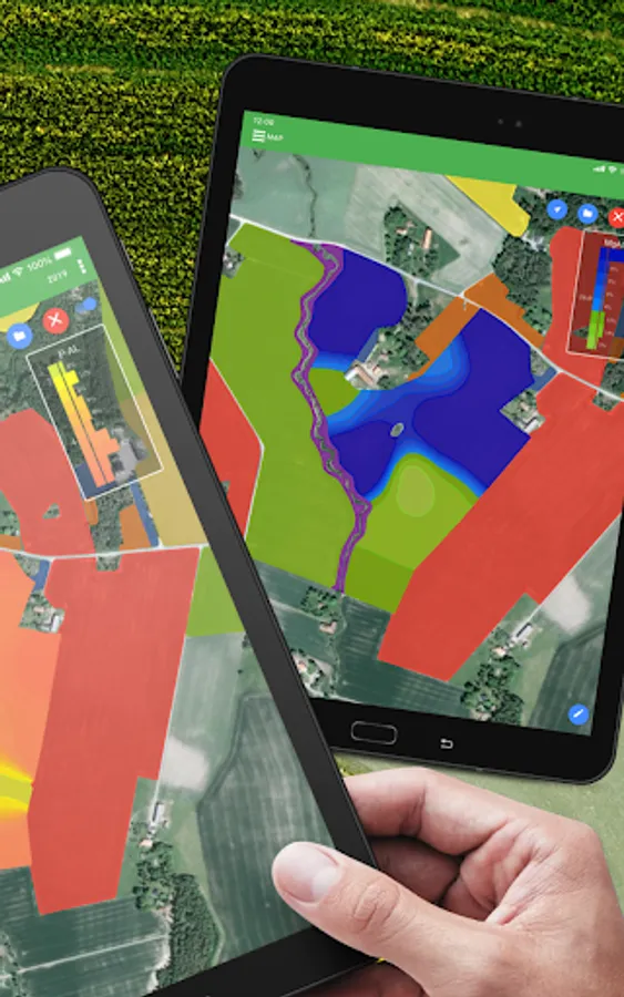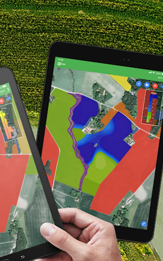 CropSAT satellite imagery or other geographical information on your smartphone or tablet. You can also add points, lines or areas of interest; make it easier to find wells, take notes on weed infected areas or draw a map of your field drainage.