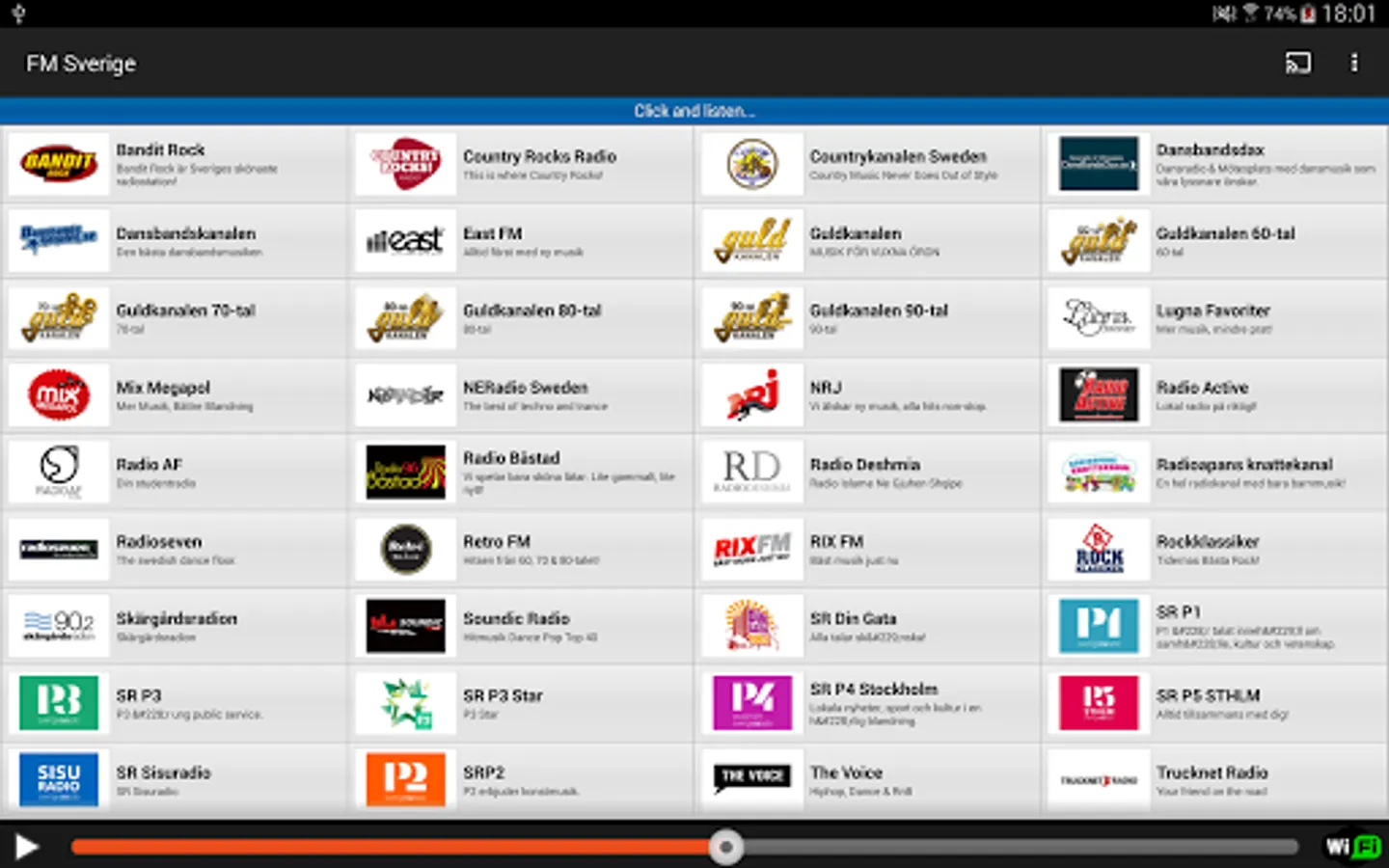 Listen to SR P1, SRP2, SR P3 SR P4 Stockholm, Bandit Rock, Dance Band Channel, East FM, Gold channel, NRJ, Mix Megapol, Vinyl 107, Rock Classics, The Voice, Calm favorites, RIX FM, SR your street, SR P5 GBG, SR Sisuradio, Dansbandsdax, Radioseven, Radio Monkey inexperienced channel Country channel Sweden, NERadio Sweden, Country Rocks Radio, Gold channel 60's Gold channel 70, Gold channel 80, Gold canal 90's Radio Deshmia, Archipelago radio, Radio Bastad, retro FM, Radio Active, SR P3 Star, Radio AF, Soundic Radio and Radio Trucknet.