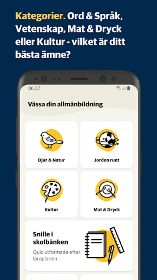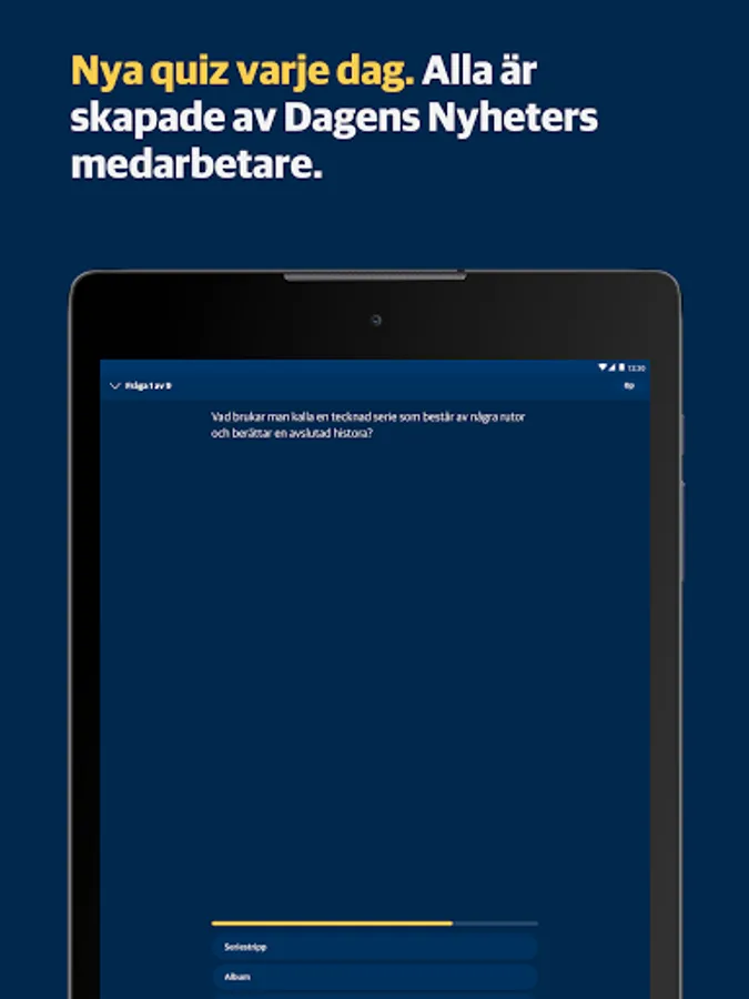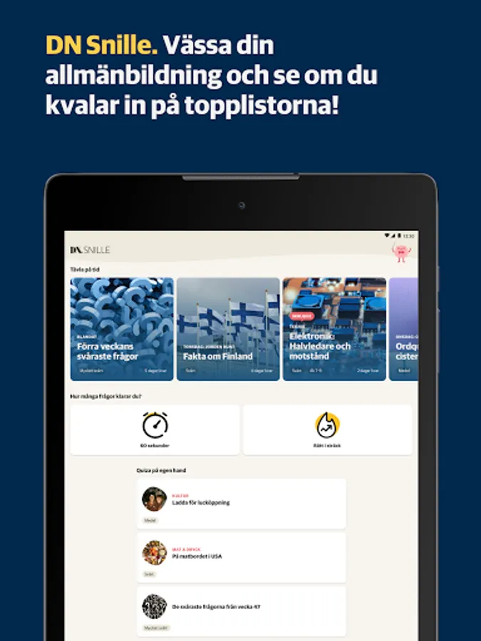 DN Snille is a quiz app from Dagens Nyheter, completely without advertising. Challenge yourself with new quizzes every day and follow your development over time. Will you become a blueberry or a champion?
