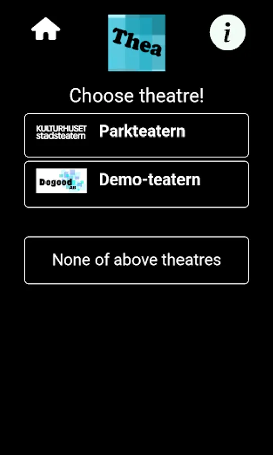 New functionality is added. The possibility to use it for outdoor performances with the communication over the mobile network. When used like that the user starts by choosing the theater they are visiting,