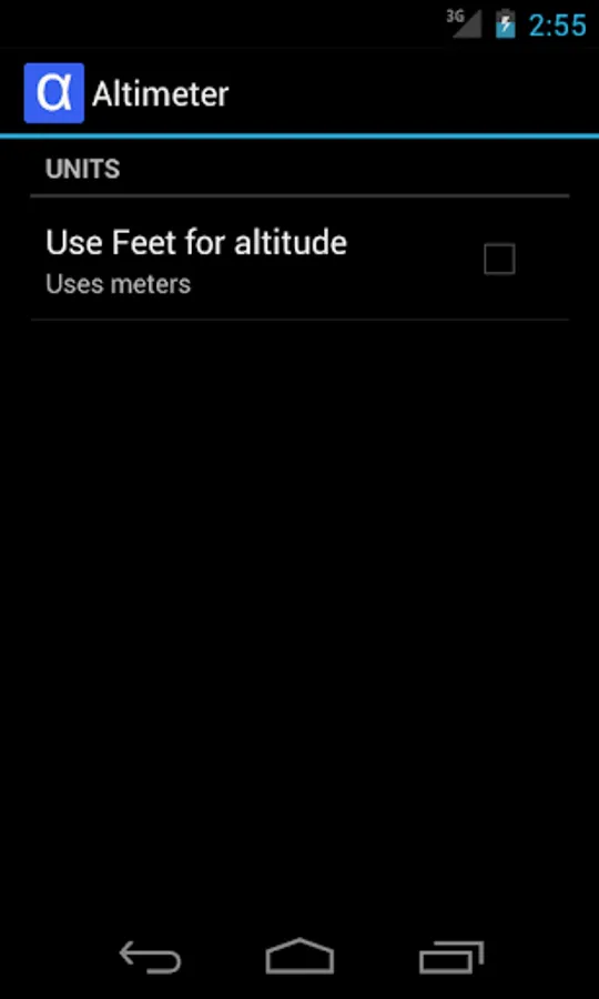 Altimeter uses the barometric pressure sensor built into your device to calculate the altitude above a specific reference layer. The reference can be set to a custom value, or you can use the current altitude as a reference.