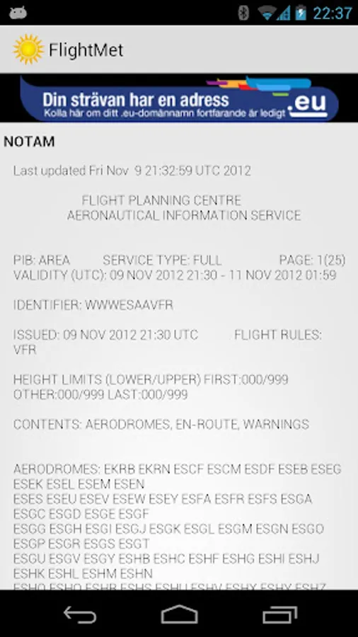 Services are mainly for pilots flying VFR in Sweden, however TAF and METAR works for all ICAO codes.