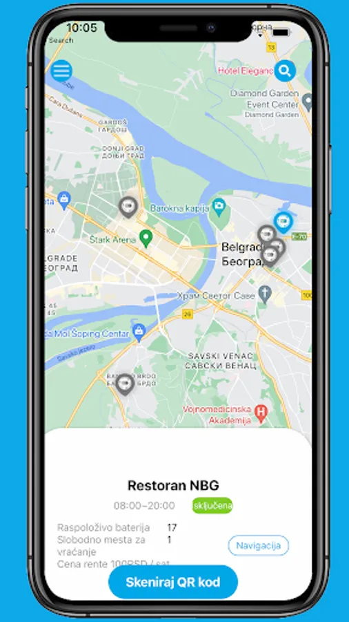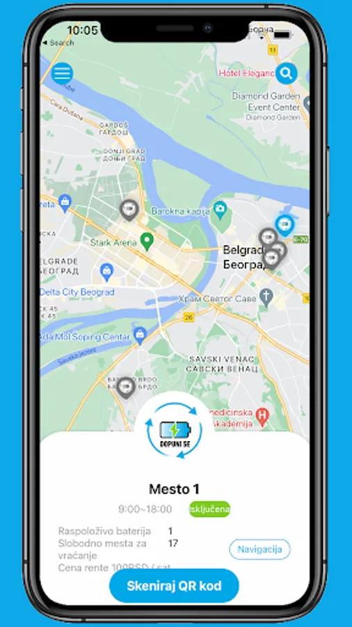 Dopuni.se is a system solution for charging electronic devices (mobile phone, smart watch, laptop, etc.) using external chargers. It is intended for all users who want to easily and quickly find the nearest battery and recharge their device. Battery rental is possible with the Dopuni.se application in numerous public places in Belgrade (restaurants, cafes, shopping centers, gyms, sports centers...).