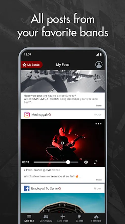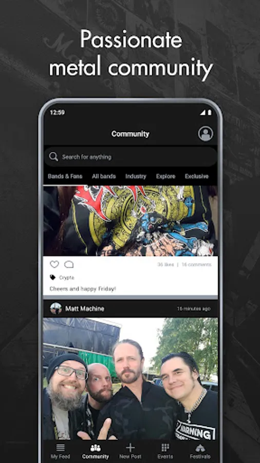 Follow your favorite hard rock and metal bands for real. Get ALL social media updates (no algorithm blocking the conversation) and create posts to bond with bands and fans.