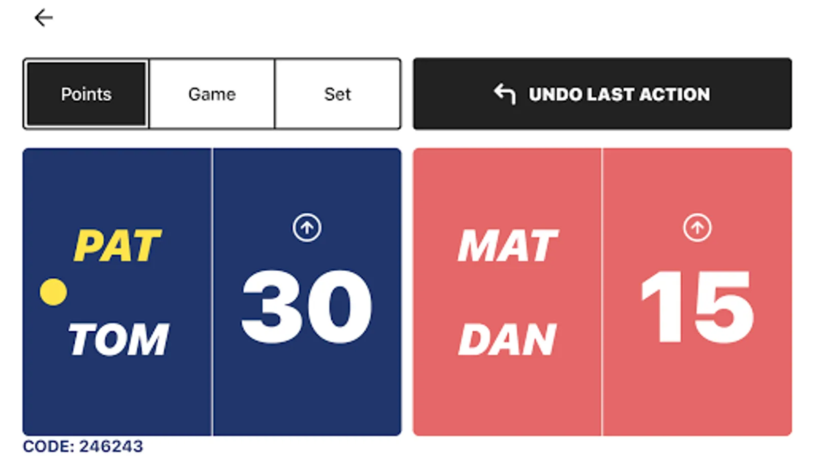 After downloading the PadelScoreBoard, all you have to do is tap on your tablet or watch for everyone in the ball to see the result.