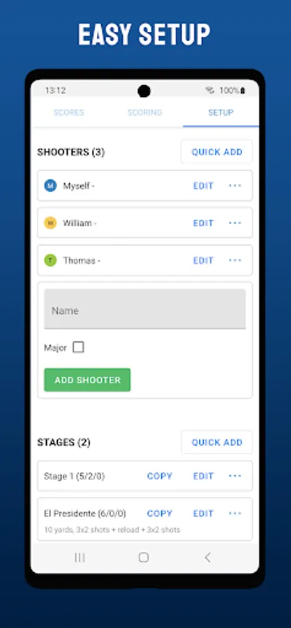 Designed to be as simple to use as possible on the range; just add a few friends and some stages and you are ready to score and review the results.