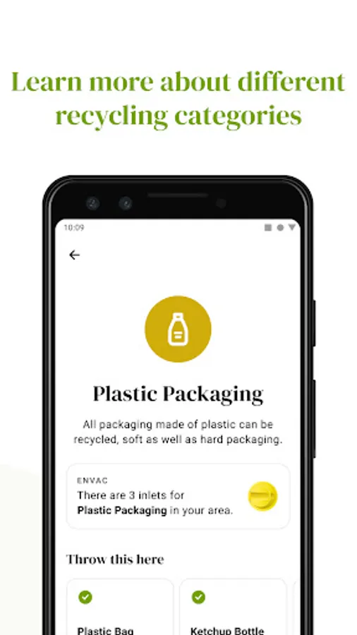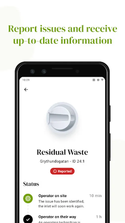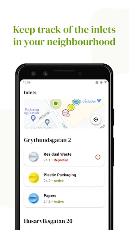 Explore how your waste and recycling is handled in Envac's system, report faulty inlets in your area, and get feedback of fixed issues through the app.