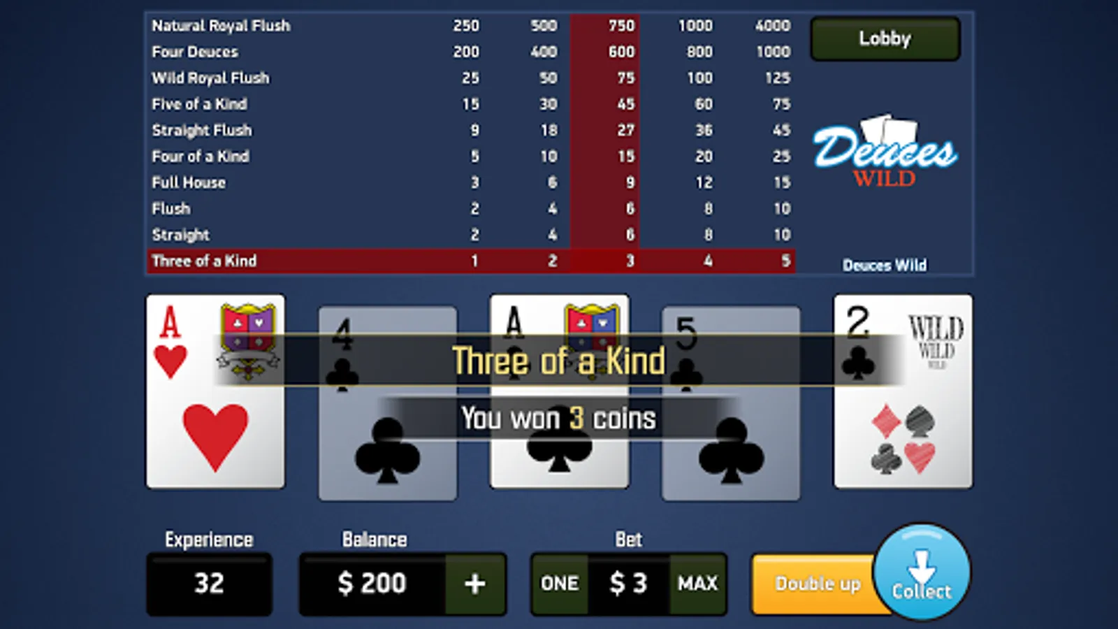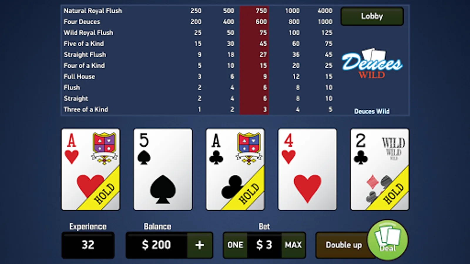 Test your skills on your favorite Video Poker game. Enjoy Deuces Wild Video Poker.