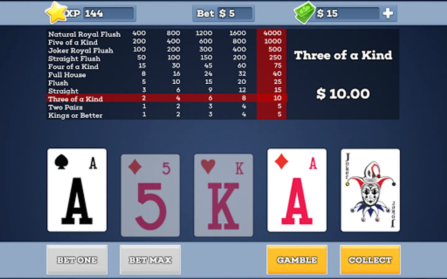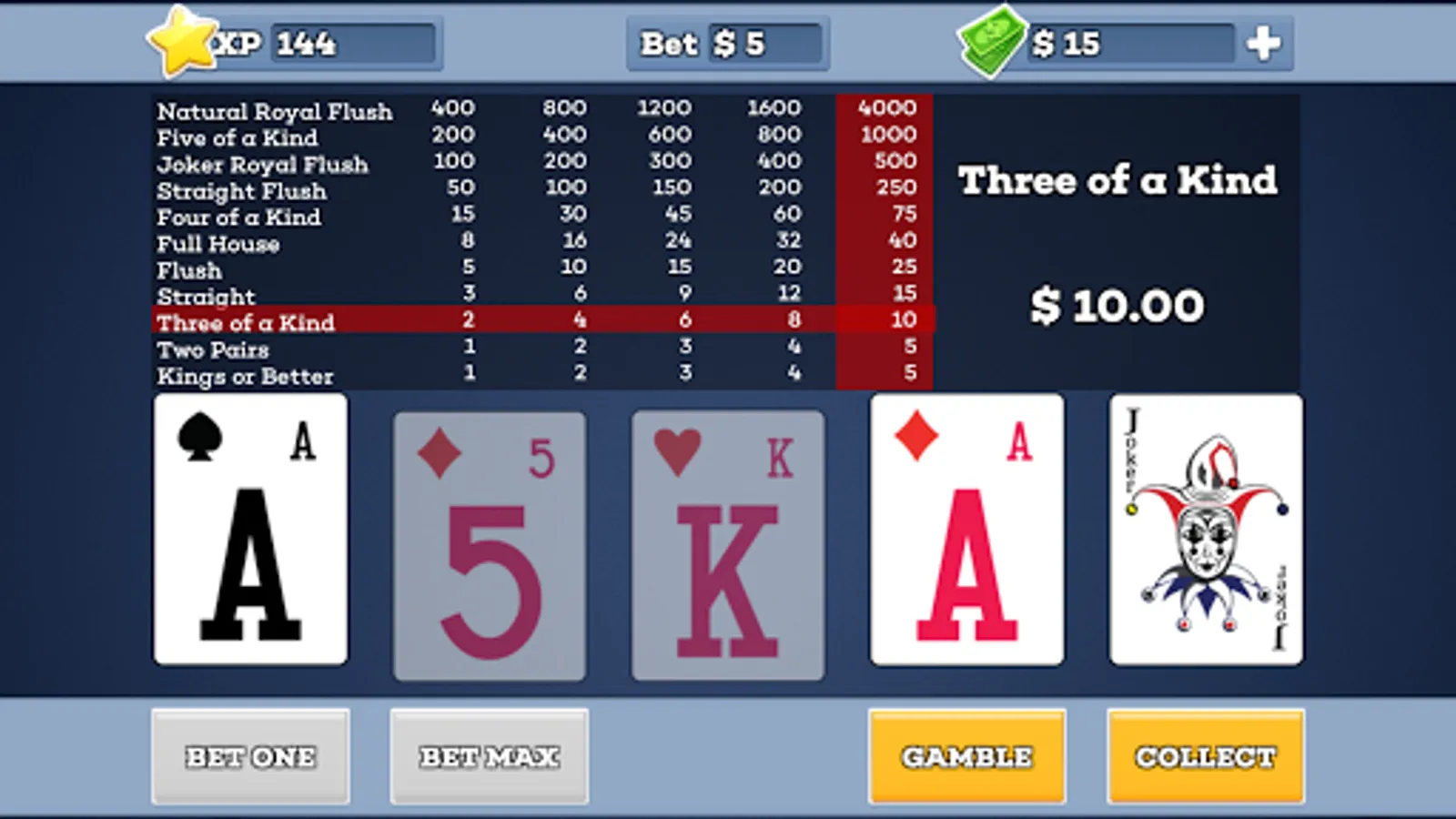 Test your skills on your favorite Video Poker game. Enjoy Joker Wild Video Poker.
