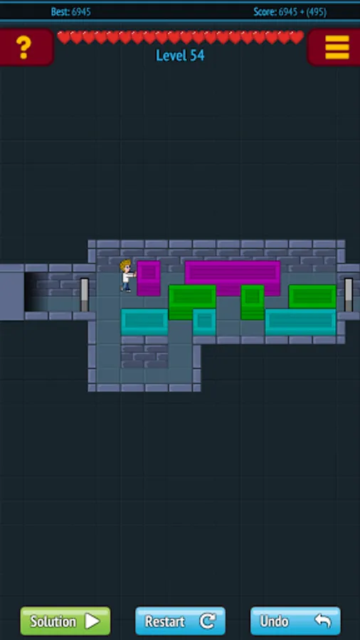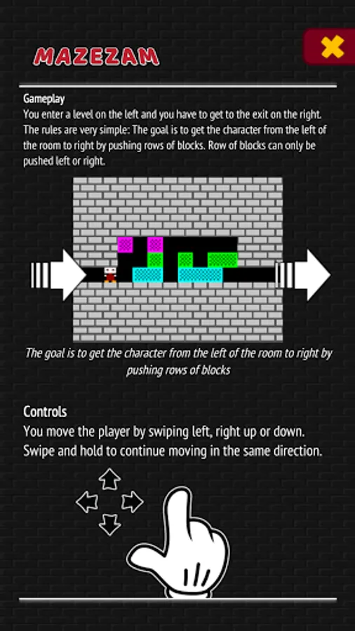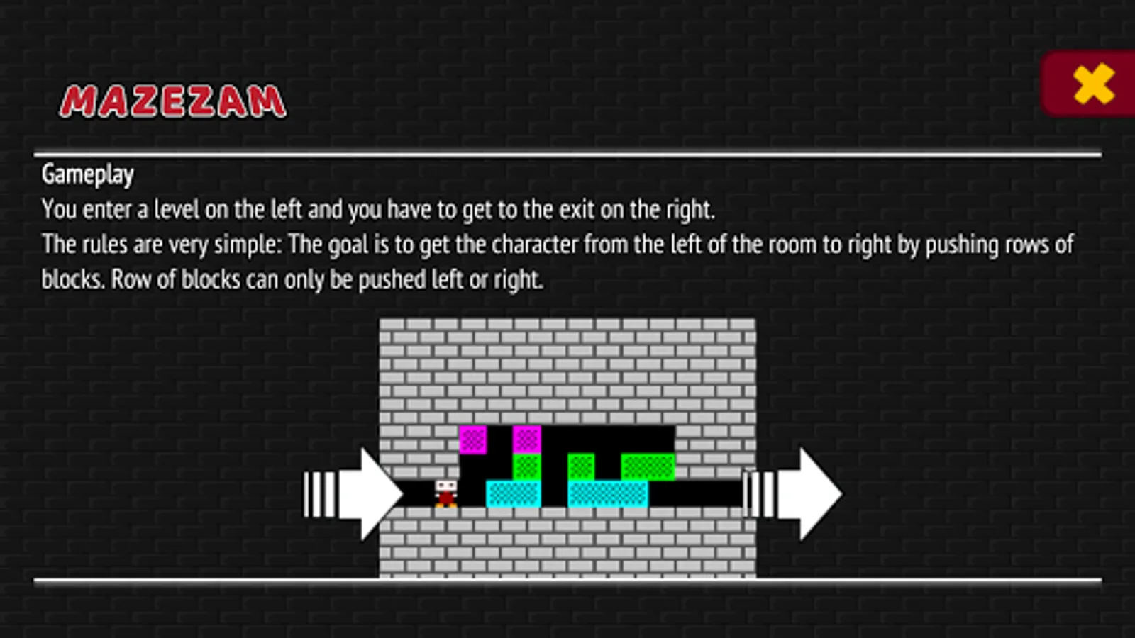 The rules are very simple: The goal is to get the character from the left of the room to right by pushing rows of blocks. Row of blocks can only be pushed left or right.