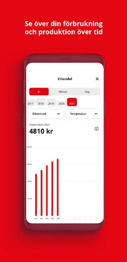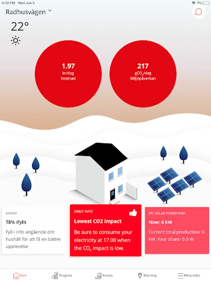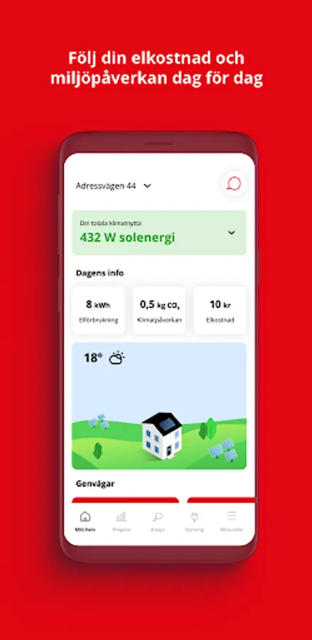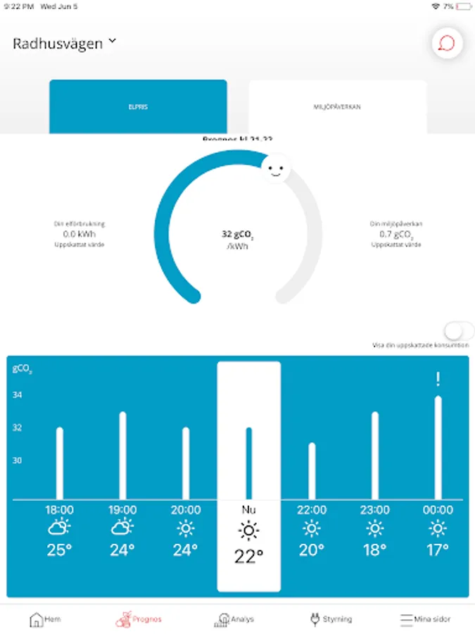 Download the app to see your real-time consumption and a price forecast for the next 24 to 36 hours. With this information you can move some of your electricity consumption from a bad hour to a good one and you will not only get a lower electricity cost but you will also further reduce your environmental impact.