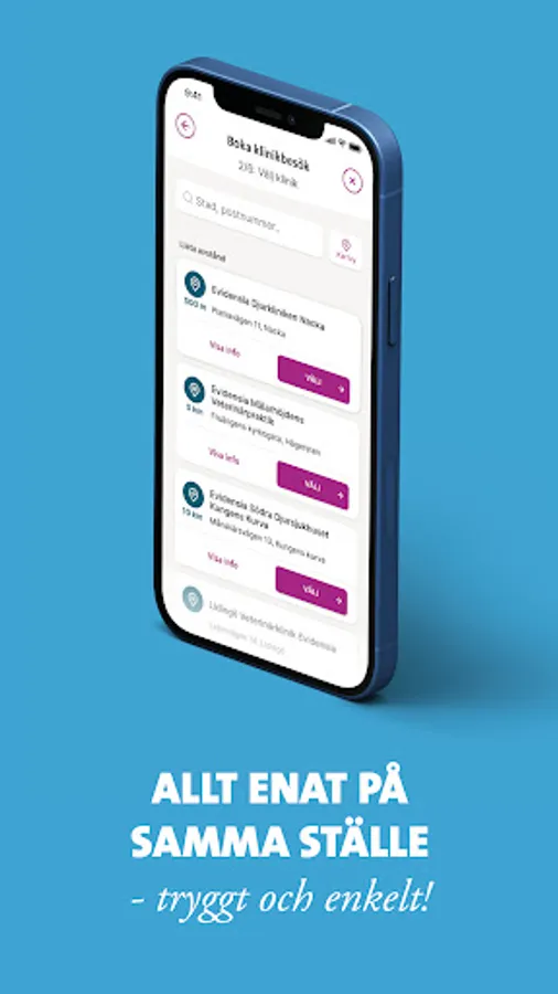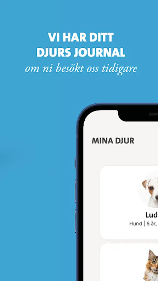 With the Evidensia app, you can easily book veterinary appointments at our practices and video consultations with one of our veterinarians on your mobile phone or tablet. You choose the appointment time and type that suits you and your pet best. If you have visited us before, we will have all the information about you and your pet. You can also add your pets directly in the app. You easily log in with your Swedish Bank-ID to get access to our services.