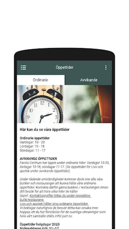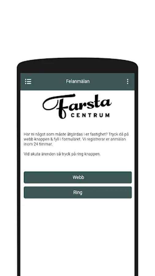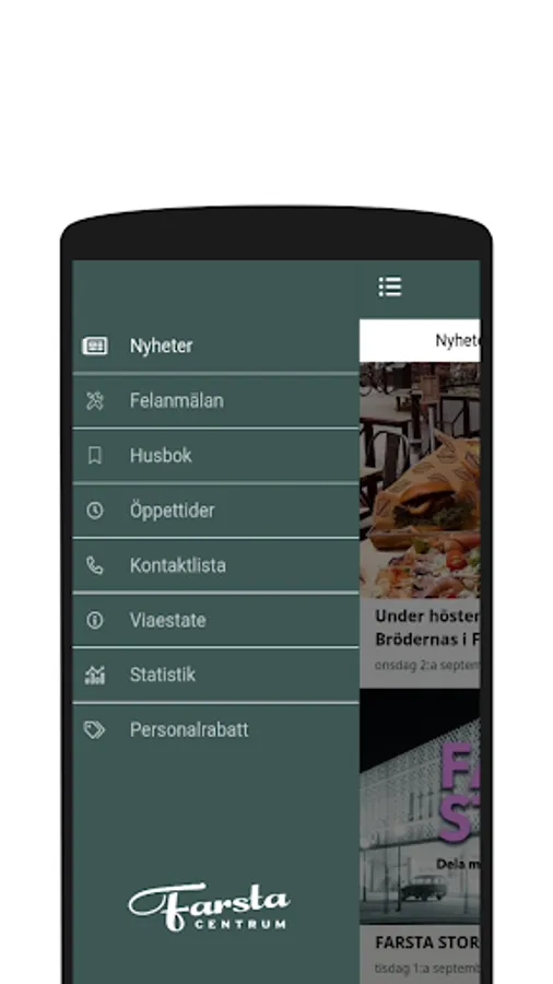 An application for Farsta centrum. The app contains information, news, etc. and will function as a modern center folder for everyone who is a store owner or who works at Farsta center. The app is password protected and you can also receive push notifications with important info from the Center Management.